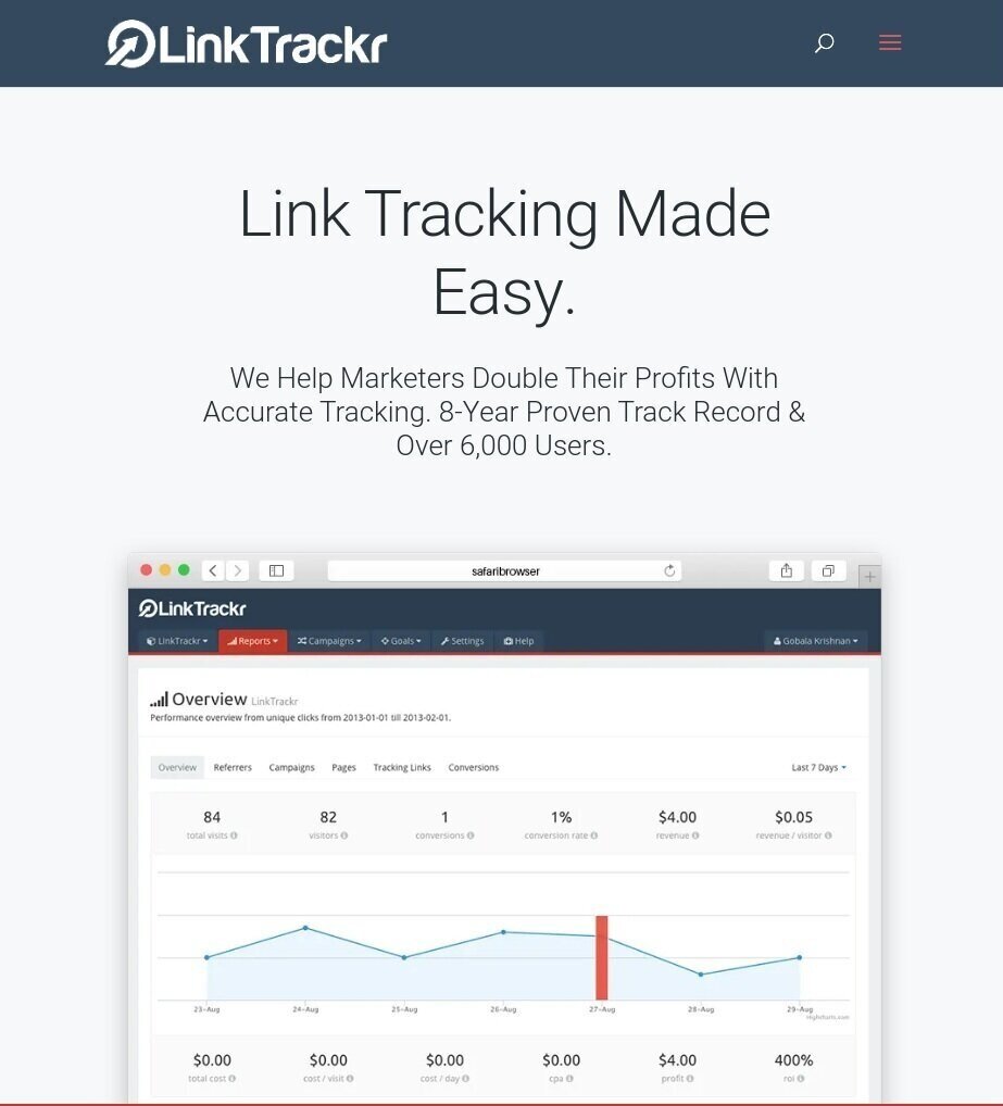 Finally, Linktrackr is a great choice. Linktrackr is nice (it’s more modern than ClickMeter, and cheaper than AdsBridge).