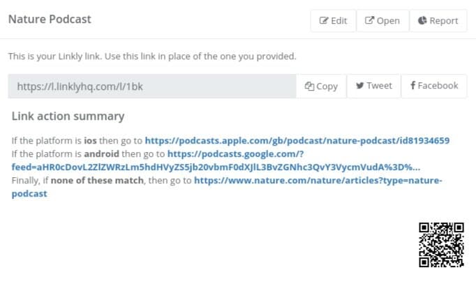 Linkly will give you a new link that you can share, which will redirect to the right podcast destination for the user’s platform: